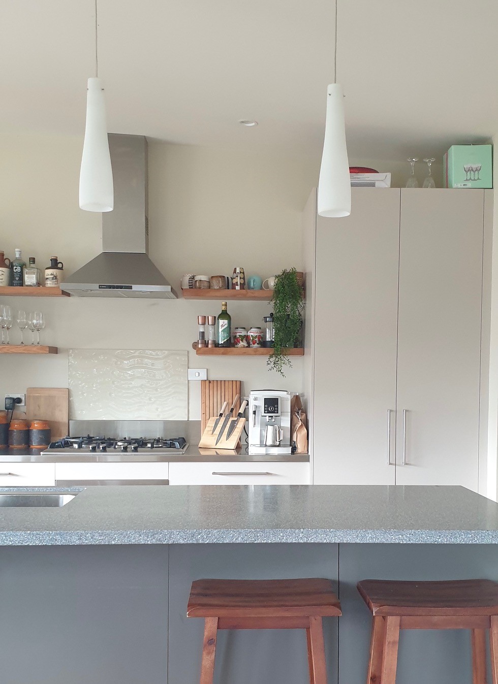 Modern kitchen design with island bench and gas stove oven make cooking a breeze.