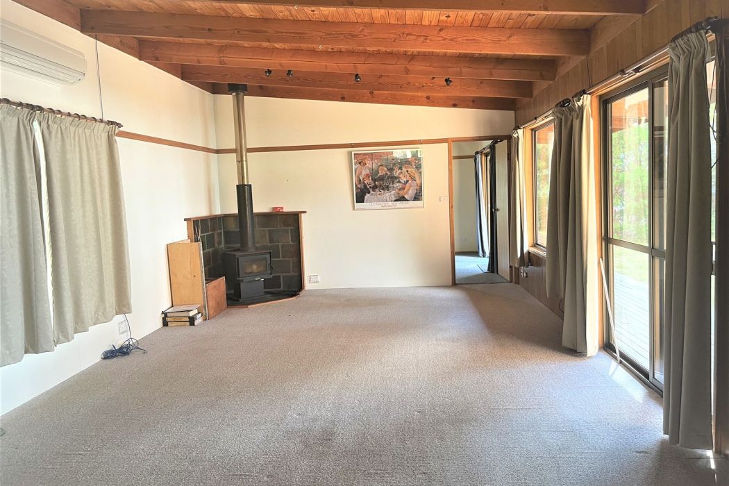 The loungeroom is equipped with both a woodheater and heatpump to ensure warmth in the colder months. The loungeroom also offers stunning water views.