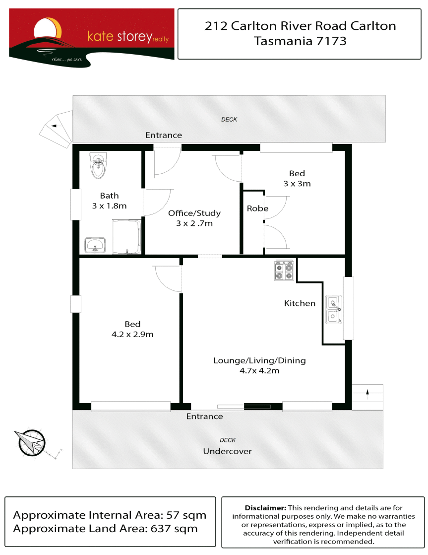 Featuring two bedrooms, study or small living area, open-plan kitchen/dining with adjacent deck capturing water views through to Frederick Henry Bay and Mount Wellington.