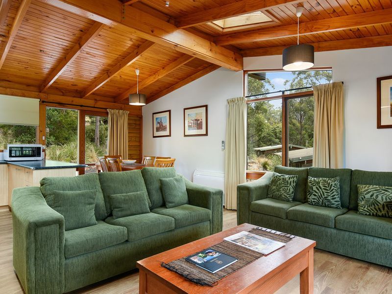 The sound of the waves as you drift off at night is perfect for those looking for relaxation and time out. The bird life is spectacular with the Swift Parrot visiting the area ensuring the protection of the environment. Potoroos come out at night and you can watch them grazing around the cabin.