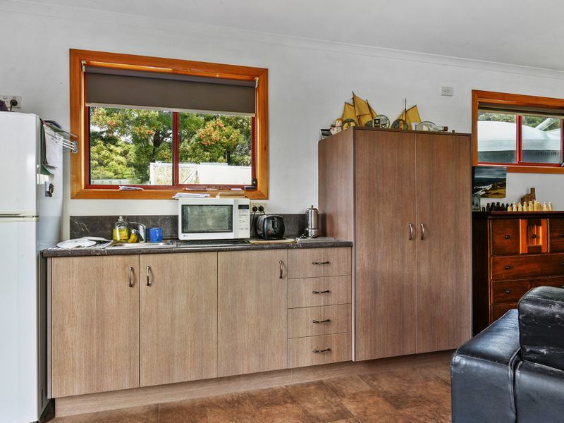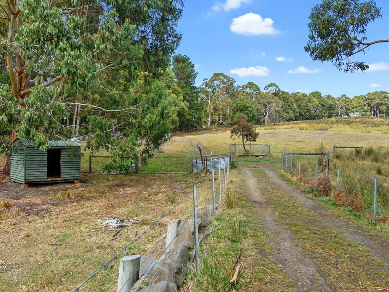 Previously a goat farm there is existing infrastructure in place including a modern workshop that was designed as a goat birthing shed which also includes a potential bedroom and bathroom that is incomplete. The sunlit open-plan 2 bedroom home has a lock-up garage that could also be utilized as a studio/sleepout or gym as there is also an additional undercover carport. -Situated across the road from the iconic Koonya Hall -Atmospheric wood heater at the heart of the home -Bathroom has separate bath and shower -3 separate dwellings giving multiple usage options -dams and a winter creek run through this property Currently leased to quality tenants happy to sign onto a longer lease term. Rent is $235 p/w for the house and $125 p/w for the chalet. We will require at least 48 hrs notice to show this property. Please not that boundary lines indicated on photos are only an approx indication and are NOT to scale. Located in picturesque countryside, approx 1hr.10 mins drive from Hobart Airport, Shelly Beach and surf beaches an easy drive away. The Koonya "old jetty site and waterfront is only a short stroll away..
