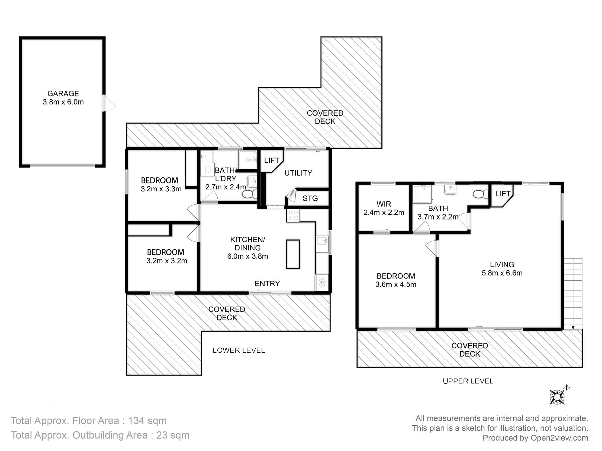 Upon entering the home downstairs, the kitchen features solid timber bench tops, and a groovy green tiled splash-back. Continuing downstairs you will find two bedrooms and a combined bathroom and laundry. This property features a utility room with lift for internal access or there are external stairs.