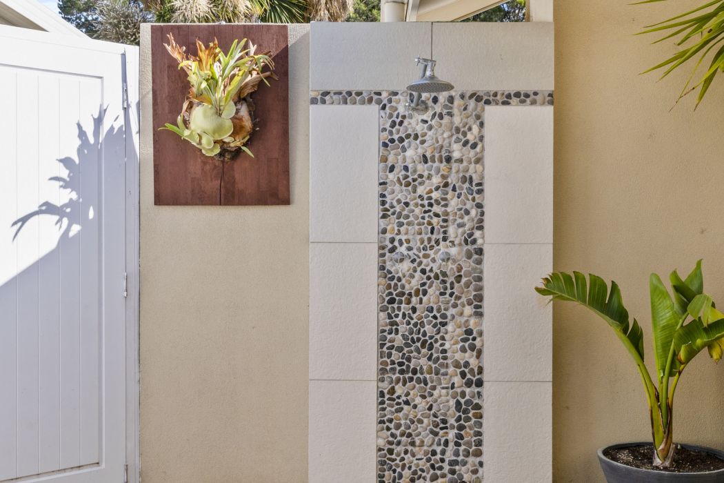 Among the many delights of this property is its outdoor entertainment area, an area you will spend most of your time. Featuring an open fireplace, a barbecue area, and an outdoor shower, perfect after your surf or swim at the beach.